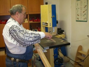 | Teilnehmer beim Zuschneiden von Leisten in den Werkstätten der GAB Berlin mbH |